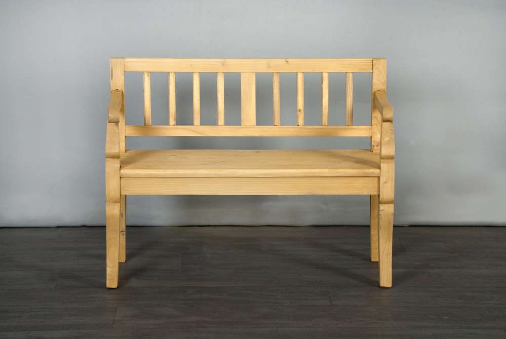 Die Bank wurde nach altem Vorbild aus Weichholz als Reproduktion gefertigt.