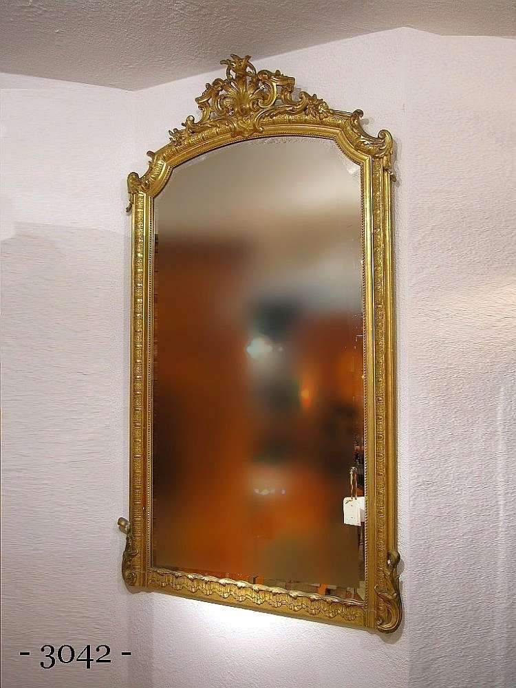 Der Spiegel wurde um 1910 mit einem Goldrahmen gefertigt und hat eine aufgesetzte Schnitzerei.
