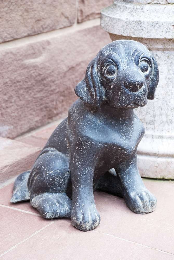Der Welpe ist aus Steinguss, handveredelt und coloriert.